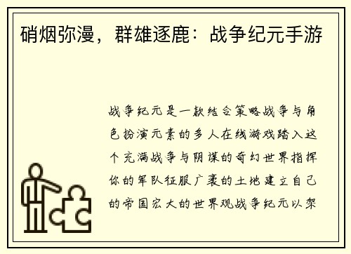 硝烟弥漫,群雄逐鹿:战争纪元手游