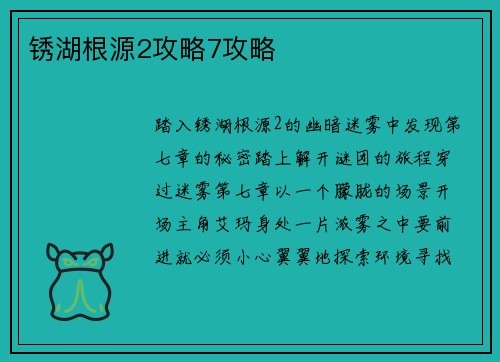 踏入锈湖根源 2 的幽暗迷雾中,发现第七章的秘密,踏上解开谜团的旅程。